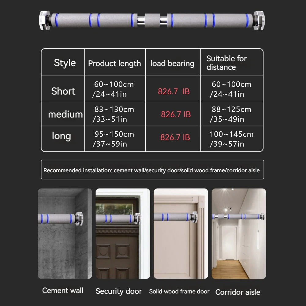 Quickly install the bar in most door frames without tools, screws, or wall damage. -